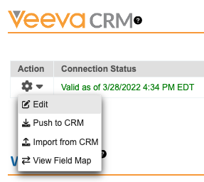 Select the Gear icon next to the Vault CRM instance in the Vault CRM section.