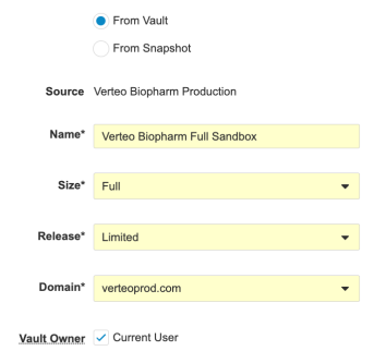 - Select Sandbox for the Vault CRM instance Type.